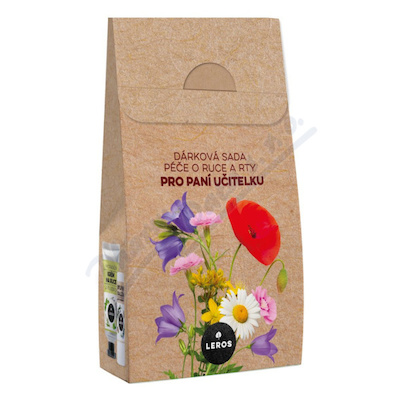 Leros Dárková sada péče o ruce a rty pro paní učitelku obsahuje Leros Hydratační krém na ruce Vzduch a Leros Balzám na rty s rozmarýnem.