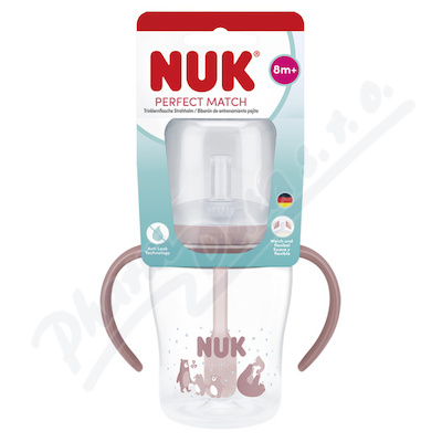 Lahvička na učení NUK Perfect Match se silikonovým brčkem, 150ml, s kontrolou teploty. Pomáhá přirozenému přechodu z lahvičky na hrneček. Brčko je extra měkké a ohebné, se širokou oporou pro rty, která se přizpůsobuje dětským ústům. Od 8 měsíců.