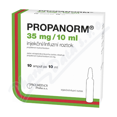 Propanorm 35 mg/10 ml injekční roztok, je účinný při léčbě určitých chorobných zrychlení srdečního rytmu (tachykardie). Čtěte pozorně příbalový leták.