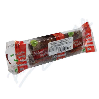 Jablečné trubičky s karobovou polevou z čerstvé jablečné dřeně bez lepku a konzervačních látek, s vysokým obsahem vlákniny.