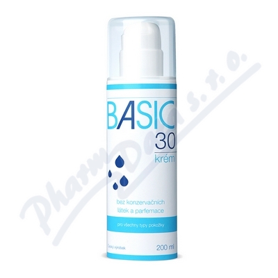 BASIC30 krém je základní krém, který zlepšuje stav pokožky tím, že jí dodává vodu a tuky. Pokožku mírně promašťuje, posiluje její přirozené ochranné mechanismy, chrání před vnějším podrážděním. Je bez parfemace, hypoalergenní a neobsahuje parabeny.