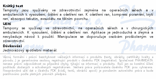Tampony jsou využívány ve zdravotnictví zejména na operačních sálech a v ambulancích k vysoušení, čištění a ošetření ran. K ošetření ran, kompresi poranění, krytí ran, absorpci tekutin, exsudátu na tělním povrchu.