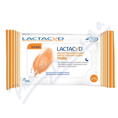 Vlhčené ubrousky pro intimní hygienu Lactacyd Femina obsahují přírodní L-kyselinu mléčnou a alantoin, který je známý svými zklidňujícími účinky. Hypoalergenní.