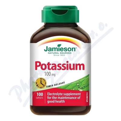 Tablety Jamieson Draslík 100 mg s postupným uvolňováním dodávají tělu aktivní draslík v průběhu 6–8 hodin.