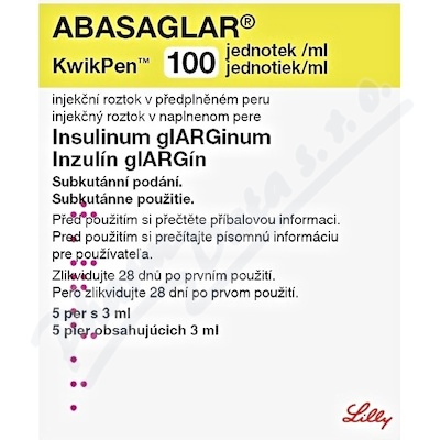 ABASAGLAR obsahuje inzulin glargin, inzulinový analog s prodlouženým trváním účinku. Léčba diabetes mellitus u dospělých, dospívajících a dětí ve věku od 2 let. Čtěte pozorně příbalový leták.