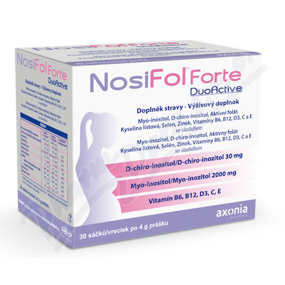 NosiFol Forte DuoActive je doplněk stravy se sladidlem určený pro podporu plodnosti. Obsahuje myo-inositol, d-chiro-inositol a biologicky aktivní folát nejnovější generace.