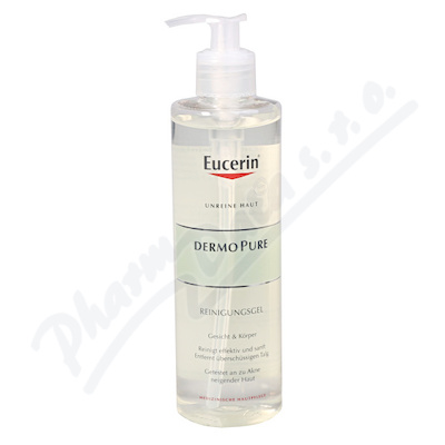 EUCERIN DERMOPURE Hloubkově čisticí gel díky složení bez mýdlových složek a s obsahem 6% amfotensidů účinně, avšak šetrně zbavuje pleť přebytečného kožního mazu a zároveň odstraňuje nečistoty a make-up.