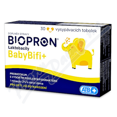 Probiotický komplex BIOPRON BabyBifi představuje jedinečnou a vyváženou kombinaci probiotických kultur obohacených o prebiotické fruktooligosacharidy (FOS), přizpůsobenou dětské střevní mikroflóře.