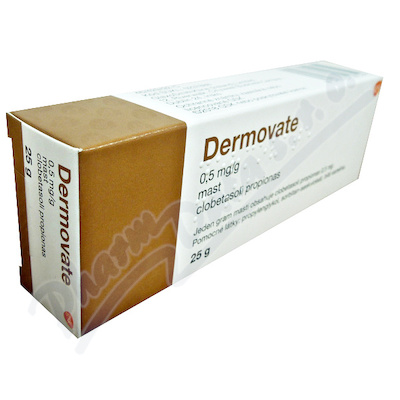 Dermovate, mast, je velmi účinný topický kortikosteroid vhodný zejména pro dospělé, starší pacienty a děti starší jednoho roku ke zmírnění zánětlivých a svědivých projevů dermatóz reagujících na léčbu steroidy, např. často se opakující ekzém, psoriáz. Čtěte pozorně příbalový leták.