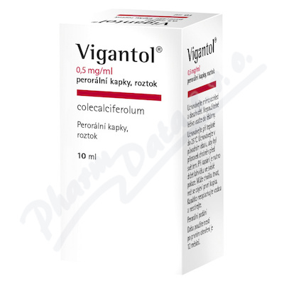 Vigantol, perorální kapky, obsahuje vitamín D3, který má vliv na regulaci metabolizmu vápníku v těle a používá se k prevenci a léčbě stavů, kdy je snížená hladina vápníku v krvi a k zabránění rozvoje chorobných stavů způsobeným nedostatkem vitamínu D. Čtěte pozorně příbalový leták.
