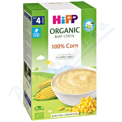 HiPP BIO První obilná kaše - 100% kukuřičná je vhodná pro kojence od ukončeného 4. měsíce. Obsahuje hodnotné a snadno stravitelné BIO obiloviny. Výrobek je v BIO kvalitě. Bez lepku, bez mléčné složky.