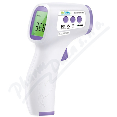Bezkontaktní teploměr Hetaida je infračervený teploměr měřící teplotu čela nebo okolních předmětů. Rychlé 1 vteřinové měření, 50 pamětí, přesnost 0,2°C. Má automatické vypínání. Podsvícený displej s různými barvami dle naměřené teploty.