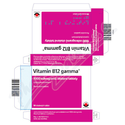 Vitamin B12 gamma, obalené tablety, je určen k léčbě nedostatku vitaminu B12 u pacientů s nutričním nedostatkem vitaminu B12, při nedostatečném vstřebávání vitaminu B12, perniciózní anémii, atrofické gastritidě, u pacientů, kteří trpí celiakií. Čtěte pozorně příbalový leták.
