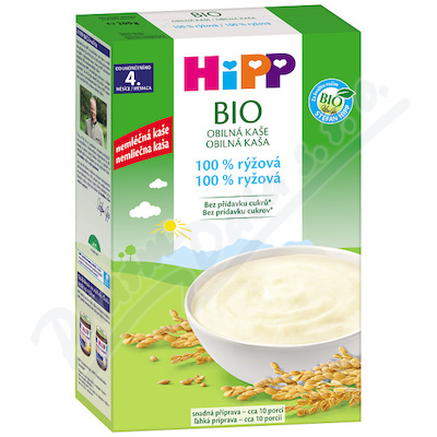 BIO obilná kaše - 100% rýžová od ukončeného 4. měsíce je vhodná v období přikrmování jako dokrm ke kojení nebo k počátečnímu mléku. Nemléčnou kaši připravíte velmi jednoduše - smícháním s převařenou pitnou vodou nebo s kojeneckým mlékem. Bez lepku.