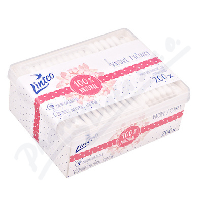 Ekologické vatové tyčinky LINTEO 100% NATURAL jsou vyrobeny z recyklovaného papíru a 100% bavlny. Produkt je tak v přírodě zcela rozložitelný. Jsou balené v boxu po 200 kusech. Složení: 100% bavlna + papír. Výrobce a dodavatel: Melitrade a.s.
