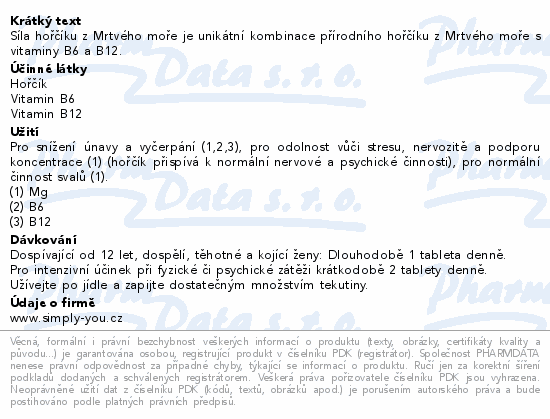 Síla hořčíku z Mrtvého moře je unikátní kombinace přírodního hořčíku z Mrtvého moře s vitaminy B6 a B12.