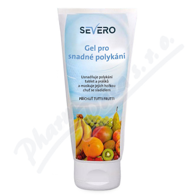 SEVERO gel usnadňuje polykání tablet a prášků a maskuje jejich hořkou chut’ sladidlem. Příchuť tutti frutti.