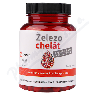 Železo chelát je doplněk stravy s vysokou biodostupností a výbornou snášenlivostí, který napomáhá ženám a dívkám doplňovat úbytek železa v krvi při silné menstruaci, dále je vhodný pro těhotné ženy, vegetariány a pro dárce krve.