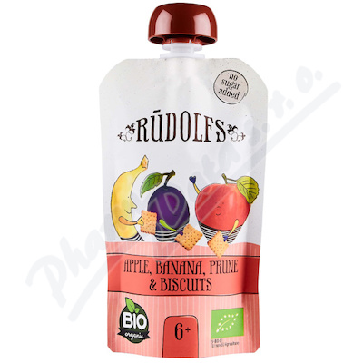 Ovocný příkrm se sušenkami pro zvláštní výživu kojenců a malých dětí od ukončeného 6. měsíce. Bez přidaného cukru (obsahuje pouze přirozeně se vyskytující ovocné cukry).