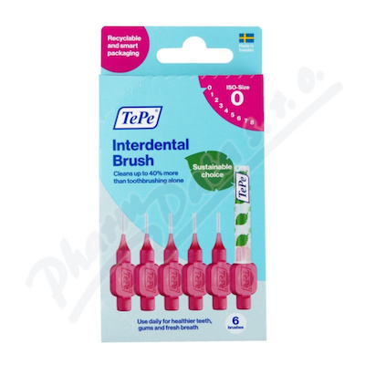 TePe Original meziz. kartáčky 0,4 mm, růžové, 6 ks. Drátek je potažený plastem pro maximální ochranu dásní a citlivých zubních krčků. Vysoce odolné vůči zlomení. Plochá rukojeť pro pohodlné a přesné čištění. Baleno v papírové uzavíratelné krabičce.