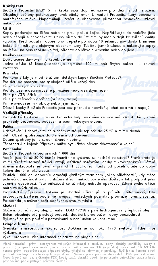 BioGaia Protectis BABY 5 ml kapky jsou doplněk stravy pro děti již od narození. Obsahují ověřený patentovaný probiotický kmen L. reuteri Protectis, který pochází z mateřského mléka. Napomáhají utvářet a obnovovat přirozenou rovnováhu střevní mikrobioty.