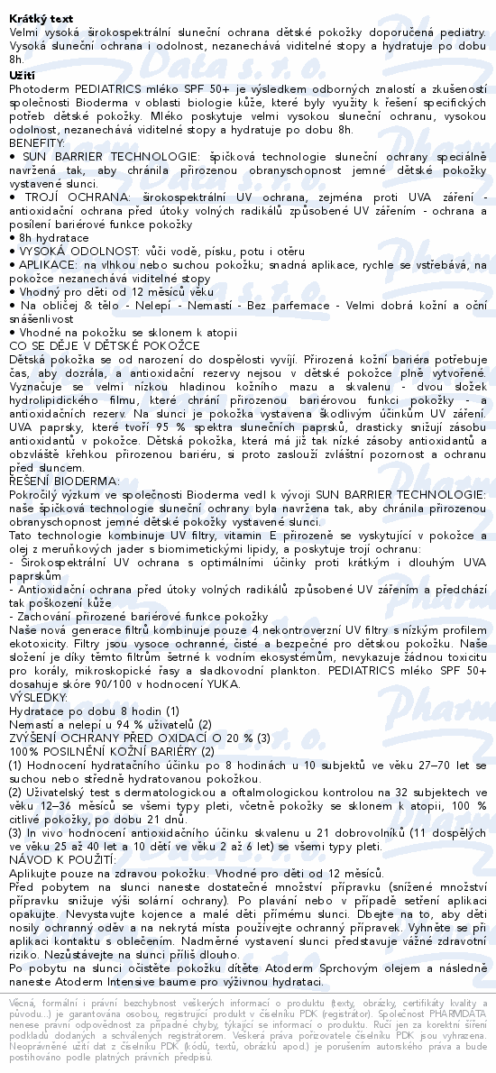 Velmi vysoká širokospektrální sluneční ochrana dětské pokožky doporučená pediatry. Vysoká sluneční ochrana i odolnost, nezanechává viditelné stopy a hydratuje po dobu 8h.