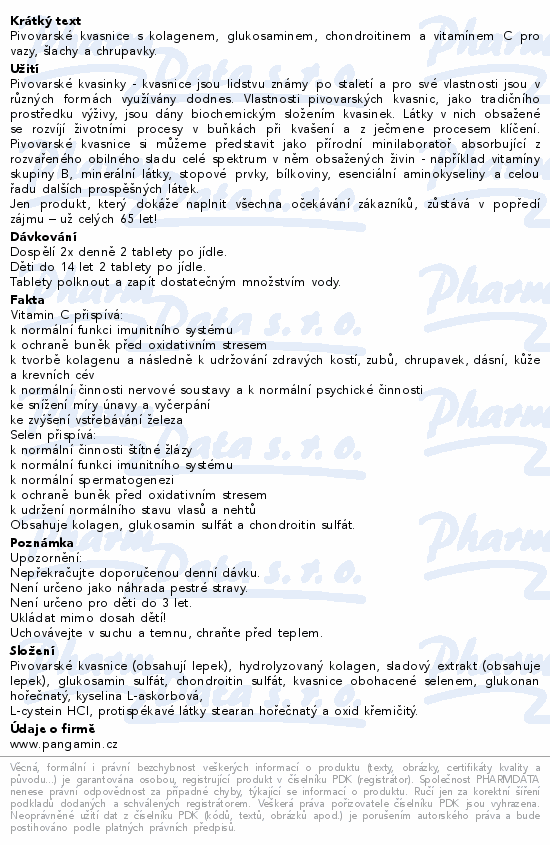 Pivovarské kvasnice s kolagenem, glukosaminem, chondroitinem a vitamínem C pro vazy, šlachy a chrupavky.