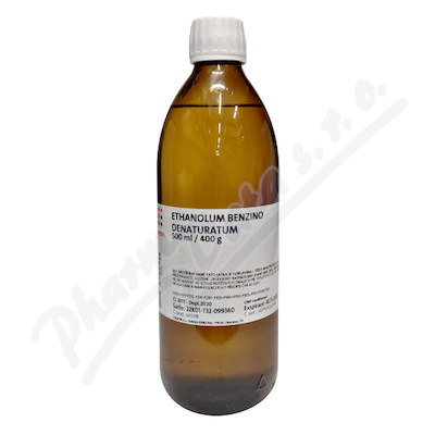Roztok 96% ethanolu denaturovaný 1% lékařského benzínu. Farmaceutická surovina dodávaná výhradně s certifikátem o ověření jakosti, bez SD.