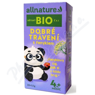Allnature Dětský čaj Dobré trávení s fenyklem BIO 20x1,5 g. Bylinný čaj, porcovaný v nálevových sáčcích.