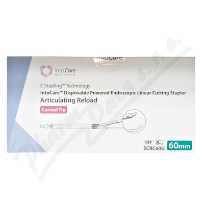 Jednorázový artikulační zásobník pro elektrický endoskopický lineární katr IntoCareTM. Na každé straně od středové linie zásobníku jsou tři řady sponek.
