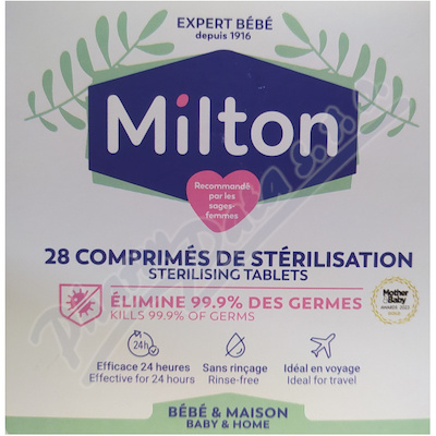 Tablety Milton sterilizují lahvičky, savičky, dudlíky, lžičky, mističky, kousací kroužky, pomůcky na kojení, hračky atd., a také je lze použit k desinfekci podlah a povrchů v domácnosti.