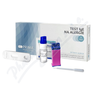 Špičkový rychlý test na detekci imunoglobulinů třídy E (IgE) od švýcarské firmy PRIMA Lab SA. Test je určen pro sebetestování. Provádí se z kapky krve. Slouží jako pomůcka k časné identifikaci možné alergické reakce. Hraniční koncentrace je 100 UI/ml.