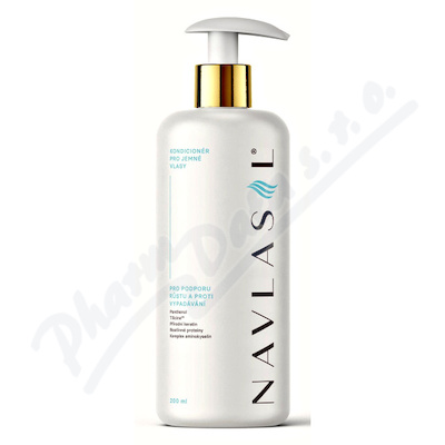 Kondicionér NAVLASIL pro jemné vlasy napomáhá růst vlasů a zabraňuje jejich vypadávání. Obsahuje složky jako Panthenol, Tilicine, přírodní keratin (Fision Kera Veg), rostlinné proteiny (Gluadin Kera P-LM) a komplex aminokyselin (PRODEW 500).