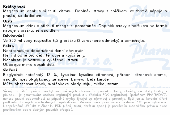 Magnesium drink s příchutí citronu. Doplněk stravy s hořčíkem ve formě nápoje v prášku, se sladidlem.