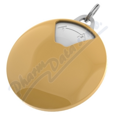 Cestovní forma dávkovače na léky vhodná jako přívěšek na klíče. Určeno pro malé množství léků. Dostupný v několika barevných kombinacích. Velikost dávkovače průměr 50 mm, výška 15 mm.
