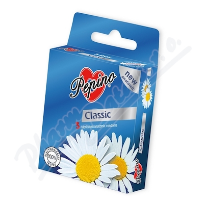 PEPINO anatomicky tvarované kondomy z přírodního latexu s rezervoárem. Šířka 53 mm, délka 190 mm. Vlhčeno silikonovým olejem. 100 % elektronicky testováno.