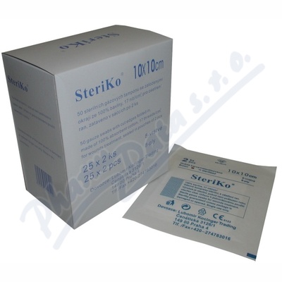 Kompresy z gázy, sterilní slouží k čistění, vysoušení a ošetření ran, popř. zastavení krvácení. Jsou vyrobeny z měkké, vysoce savé gázy ze 100% bavlny. Jsou prodyšné a jemné, mají hustotu 17nití na cm2. Kompresy jsou 8 vrstvé se založenými okraji.