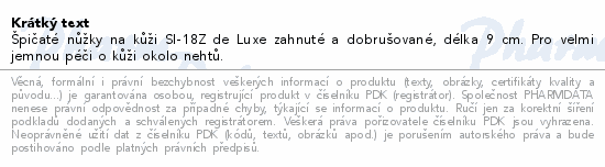 Špičaté nůžky na kůži SI-18Z de Luxe zahnuté a dobrušované, délka 9 cm. Pro velmi jemnou péči o kůži okolo nehtů.