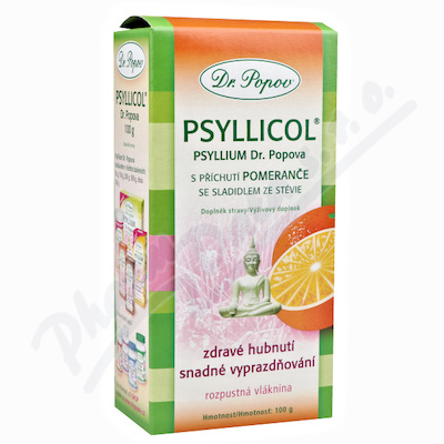Psyllicol, Psyllium Dr. Popova s příchutí pomeranče se sladidlem ze stévie, rozpustná vláknina. Napomáhá správnému vyprazdňování. Navozuje pocit sytosti.