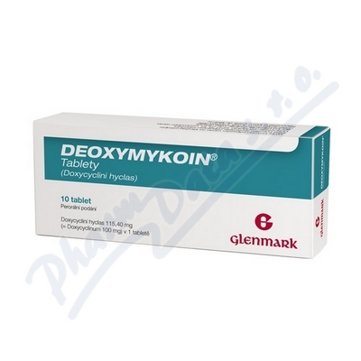 Antibiotikum doxycyklin je širokospektré antibiotikum tetracyklinové řady zastavující růst bakterií (při vyšších dávkách bakterie ničí). Deoxymykoin se používá pro léčbu infekcí vyvolaných mikroorganizmy citlivými na doxycyklin. Čtěte pozorně příbalový leták.