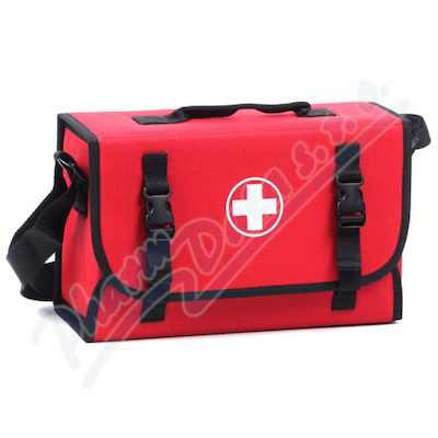 Vybavení lékárničky, které obsahuje základní komponenty pro poskytnutí první pomoci v terénu, dílně či zahradě.
