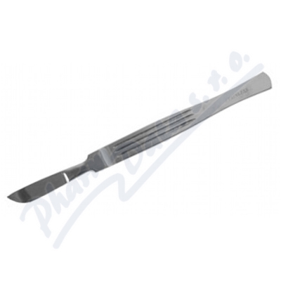 Skalpel bříškatý je velmi jemný chirurgický nástroj z kvalitní nerezavějící oceli s plochým držadlem a krátkou plochou čepelí.