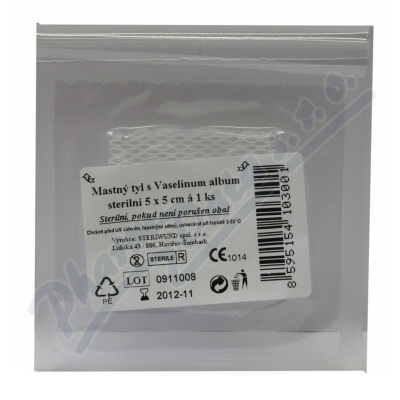 Sterilní mastný tyl je vyroben z obvazové textilie S20 - vysoce porézní hydrofobní obvaz z chemických vláken, určený pro impregnaci léčiv v tekutém nebo masťovém základu.
