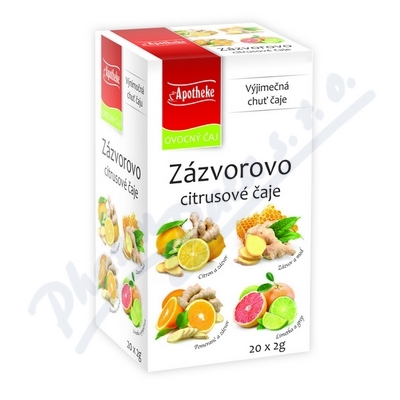 Ovocné čaje aromatizované. Soubal čtyř druhů čajů v nálevových sáčcích: Citron a zázvor, Pomeranč a zázvor, Zázvor a med, Limetka a grep.